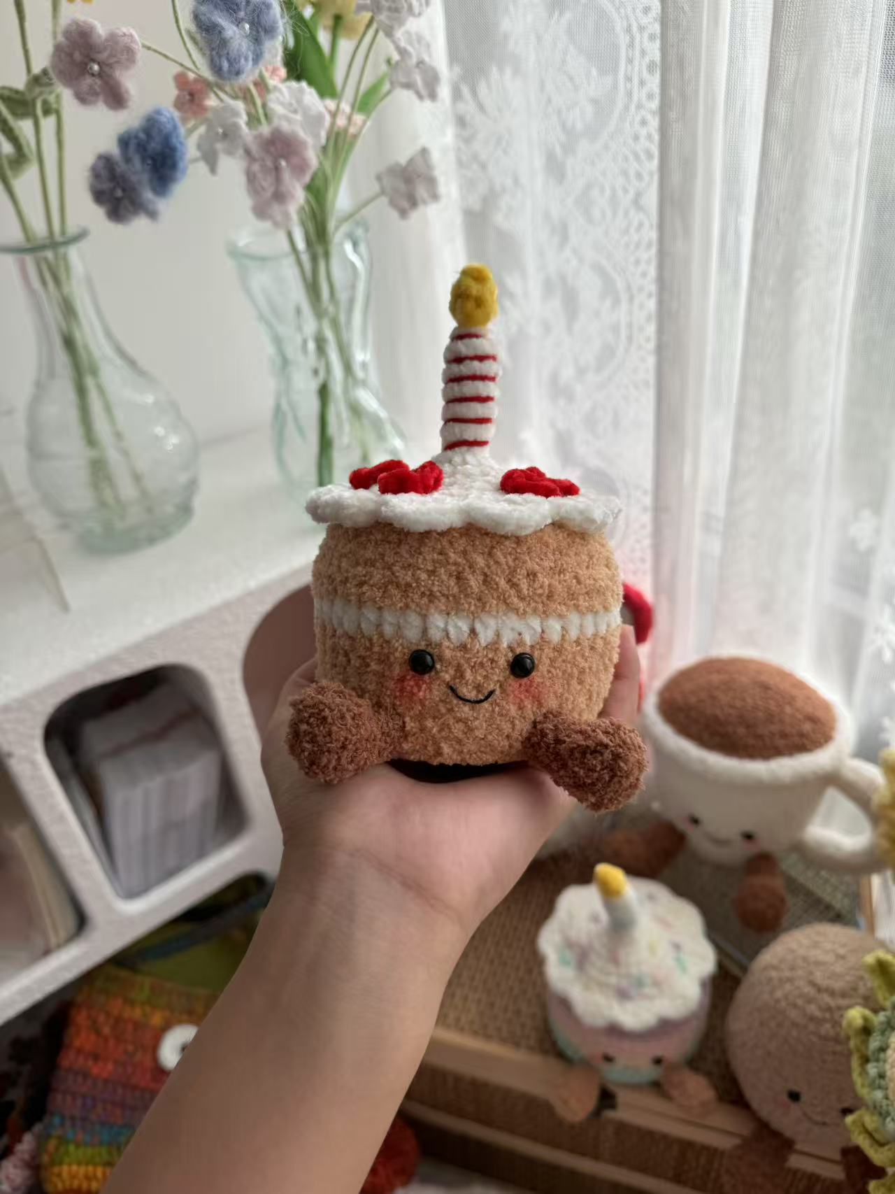 Made from ultra-soft, skin-friendly yarn, this crochet cake doll is both huggable and durable. Whether displayed as party décor, given as a thoughtful handmade gift, or kept as a whimsical home accent, it’s sure to brighten any space.