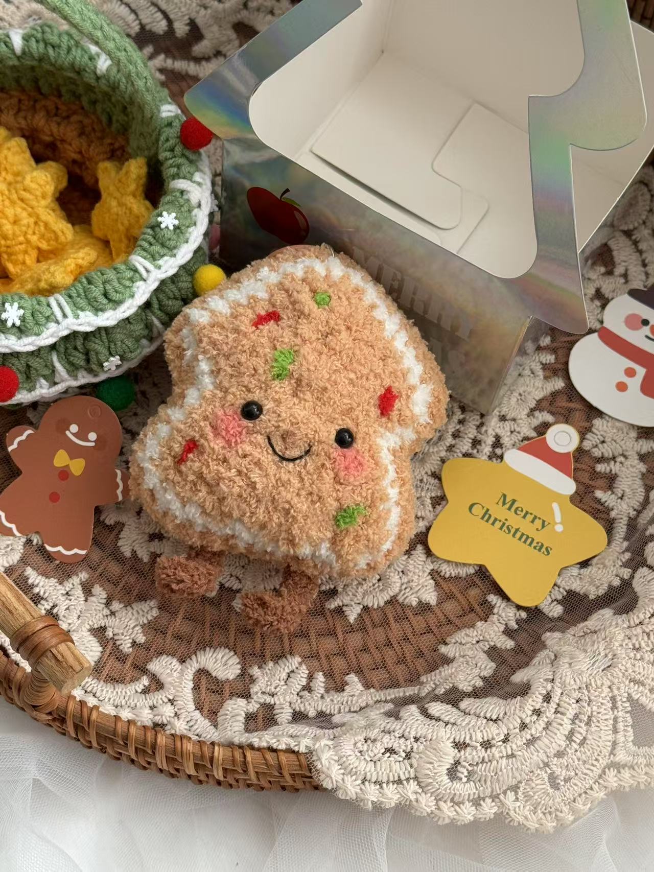 Cute Knitted Gingerbread Man Plush with Cozy Hat – Christmas Gift Idea